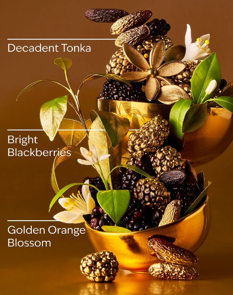 Fragrance notes: bright blackberries, golden orange blossom and decadent tonka.