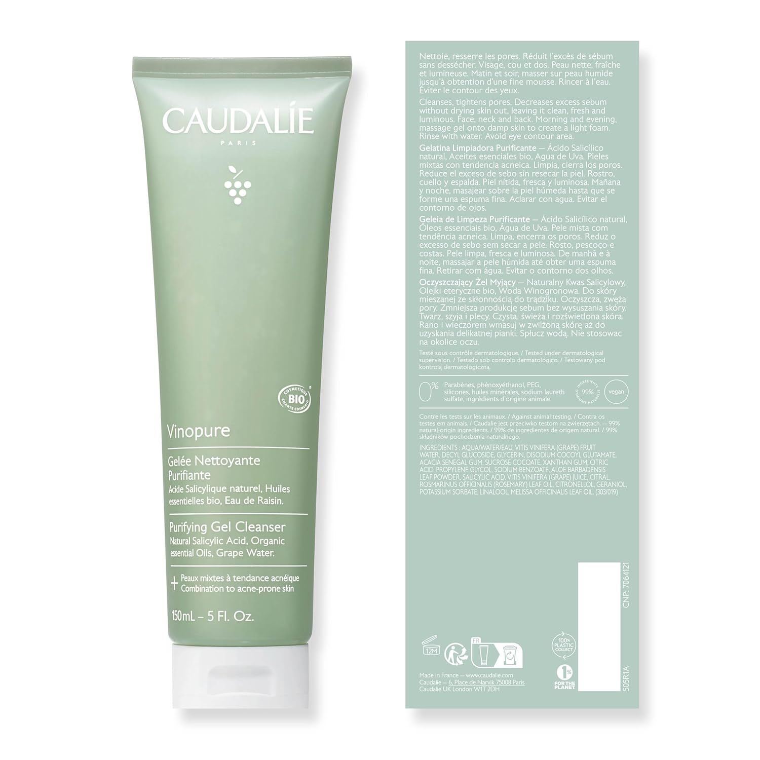 Caudalie - Vinopure Salicylic Acid Cleanser is specially designed for acne-prone and oily skin, making it the perfect first step in your daily skincare routine. This refreshing gel cleanser gently purifies the skin, unclogs pores, and reduces excess sebum without stripping away essential moisture. Infused with natural salicylic acid, it helps target blemishes, blackheads, and enlarged pores while maintaining a fresh, balanced complexion. Enriched with organic grape water and a blend of six purifying essential oils, it leaves your skin feeling calm, soothed, and comfortably clean.