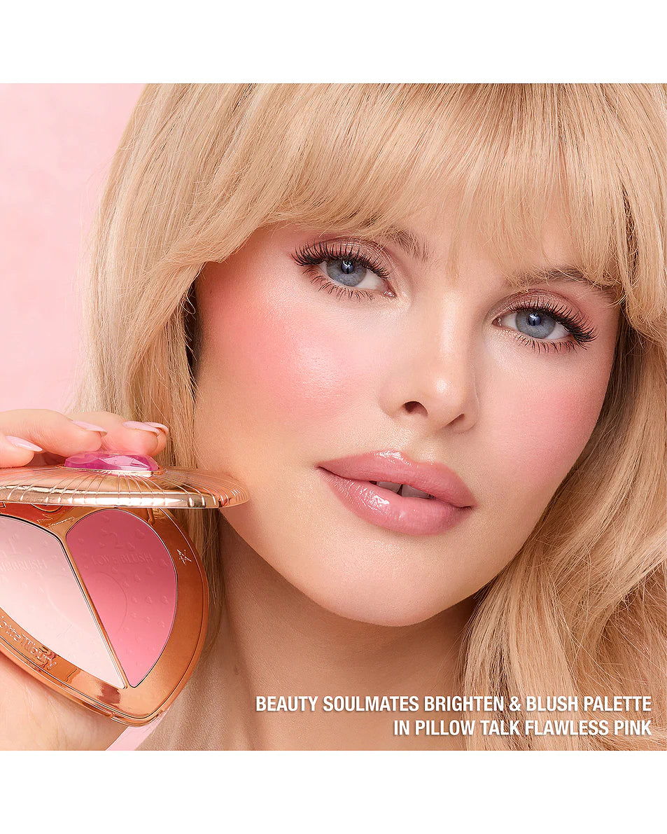 Charlotte Tilbury - Beauty Soulmates Face Palette is a limited-edition powder blush duo designed to give your complexion the iconic Pillow Talk love effect. This easy-to-use, two-in-one palette features two beauty essentials that perfectly complement each other. On one side, you'll find a brand-new shade of the best-selling Airbrush Flawless Finish powder, formulated to color correct, brighten, and blur imperfections, giving the skin a smooth, luminous finish. On the other, a fresh Pillow Talk matte blush adds a flushed, romantic glow to your cheeks for that just-fell-in-love look. Swipe and glide your way to a lifted, radiant, and healthy complexion with this collectible palette thatβs as dreamy as it is versatile.