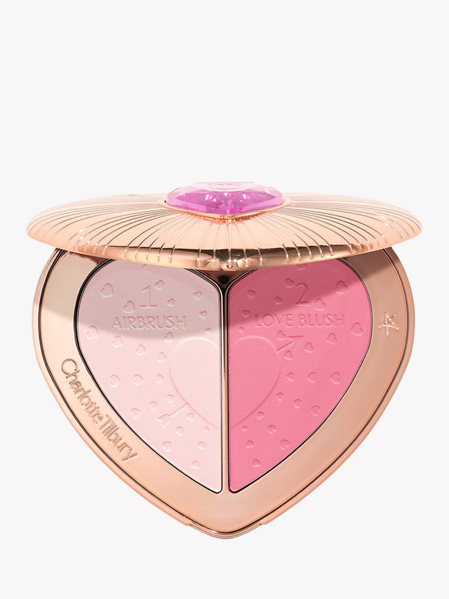 - Glide blush from the apples of the cheeks up and along the cheekbones for a Pillow Talk love blush.