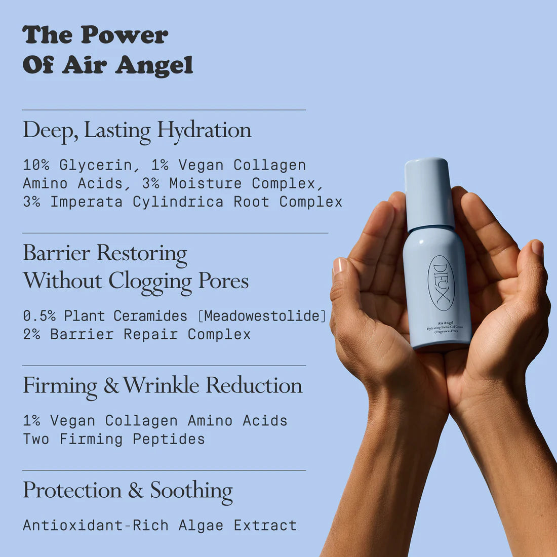 Formulated to support a healthy skin barrier, Air Angel is nonacnegenic and perfect for oily, acne-prone, dehydrated, and sensitive skin types. Whether you're layering it under a richer cream or using it solo, this barrier-boosting moisturizer helps firm and soothe the skin while maintaining a smooth, breathable feel.