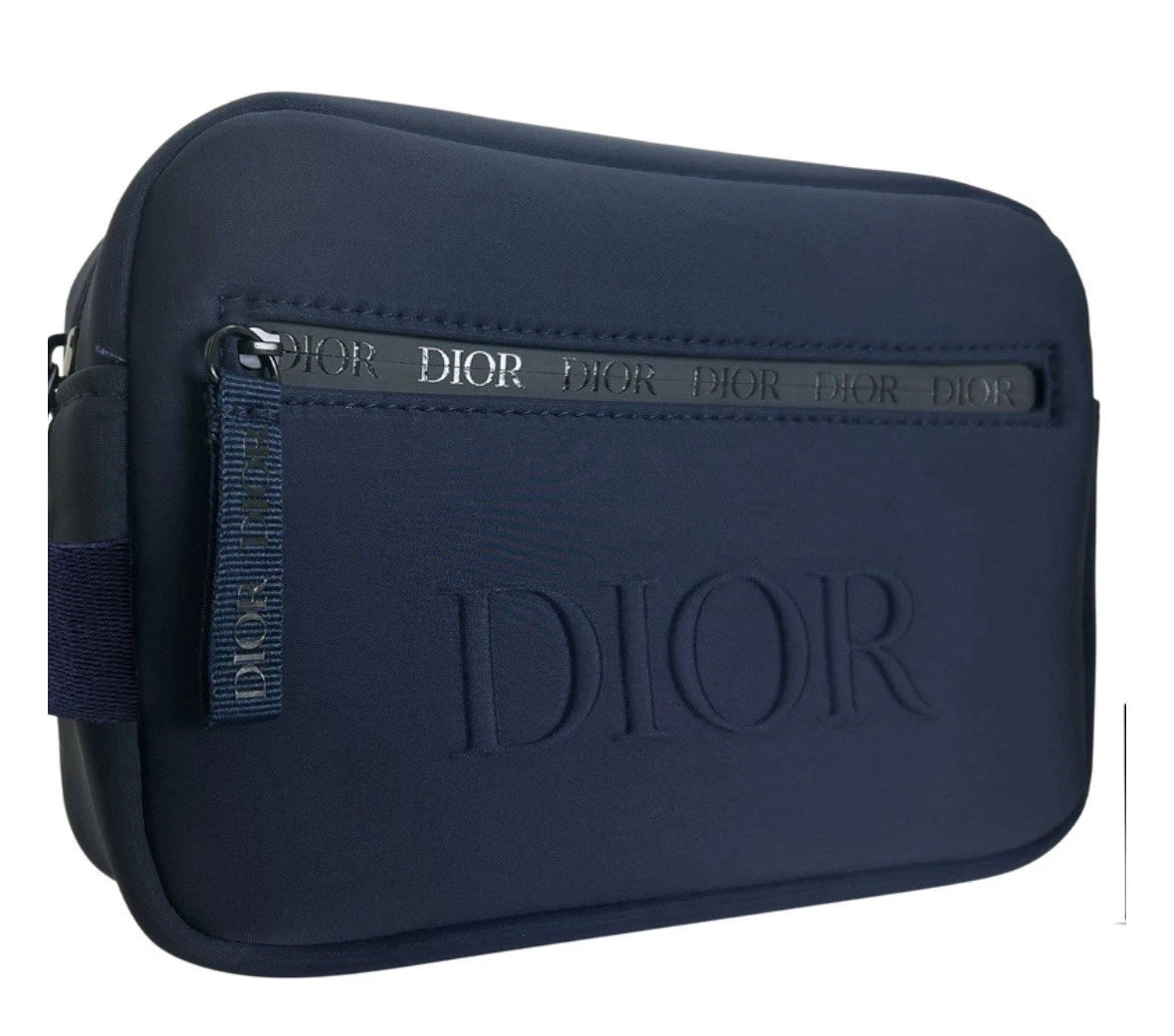Complementing the set is the Dior Men’s Navy Blue Toiletry Travel Bag, crafted from a durable blend of nylon and elastane. Its compact and stylish design, complete with a secure zip closure, makes it ideal for travel or daily use. The Dior branding ensures a luxurious touch while keeping your essentials organized on the go.