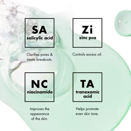 - Salicylic Acid & Zinc PCA - Helps reduce current blemishes and prevent new ones