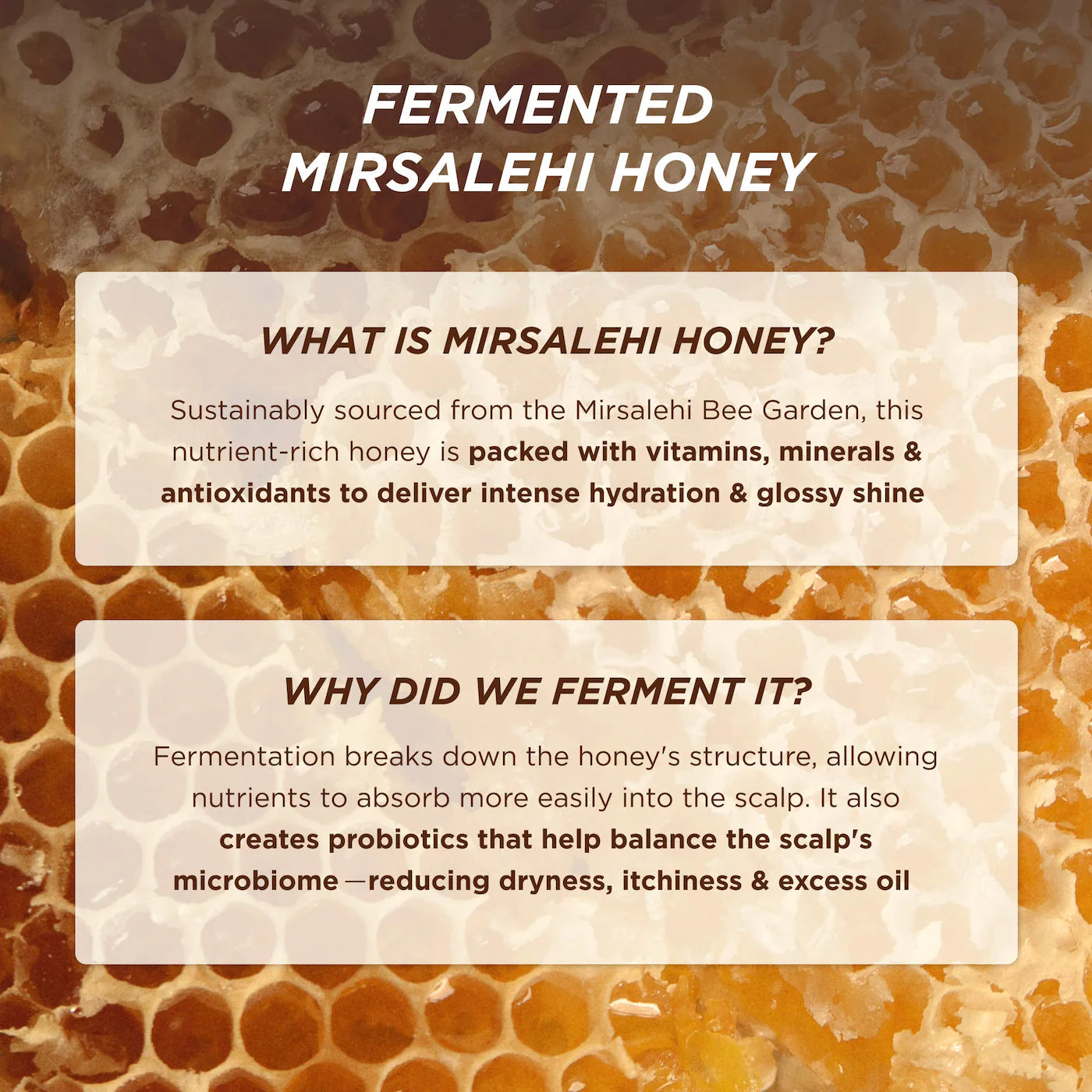 Aqua (Water/Eau), Cetearyl Alcohol, Glycerin, Parfum (Fragrance), Behentrimonium Chloride, Cetrimonium Chloride, Mel (Honey/Miel)*, Ceramide NP, Sodium Hyaluronate, Hydroxypropyltrimonium Hyaluronate, Hydrolyzed Sodium Hyaluronate, Tocopherol, Tocopheryl Acetate, Propolis Cera (Propolis Wax /Cire de Propolis)*, Vitis Vinifera (Grape) Seed Oil, Helianthus Annuus (Sunflower) Seed Oil, Carthamus Tinctorius (Safflower) Seed Oil, Calendula Officinalis Flower Extract, Oenothera Biennis (Evening Primrose) Oil, Citrus Aurantium Bergamia (Bergamot) Fruit Extract, Rosa Canina Fruit Oil, Daucus Carota Sativa (Carrot) Root Extract, Prunus Amygdalus Dulcis (Sweet Almond) Oil, Argania Spinosa Kernel Oil, Cocos Nucifera (Coconut) Oil, Gardenia Taitensis Flower Extract, Panthenol, Butyrospermum Parkii (Shea) Butter, Saccharomyces Ferment Lysate Filtrate, Silk Amino Acids, Ethylhexylglycerin, Polyquaternium-37, Stearamidopropyl Dimethylamine, Propylene Glycol Dicaprylate/Dicaprate, Lactic Acid, Hydroxyethylcellulose, Creatine, Isopropyl Alcohol, PPG-1 Trideceth-6, Citric Acid, Potassium Sorbate, Mica, Sodium Benzoate, 1,2-Hexanediol, Citrus Aurantium Peel Oil**, Coumarin**, Hexyl Cinnamal**, Limonene**, Linalool**, Linalyl Acetate**, Titanium Dioxide (CI 77891), Iron Oxides (CI 77491). * Honey & Propolis sourced from the Mirsalehi Bee Garden/Miel et Propolis des ruches du jardin Mirsalehi. ** Allergens/Allergènes .