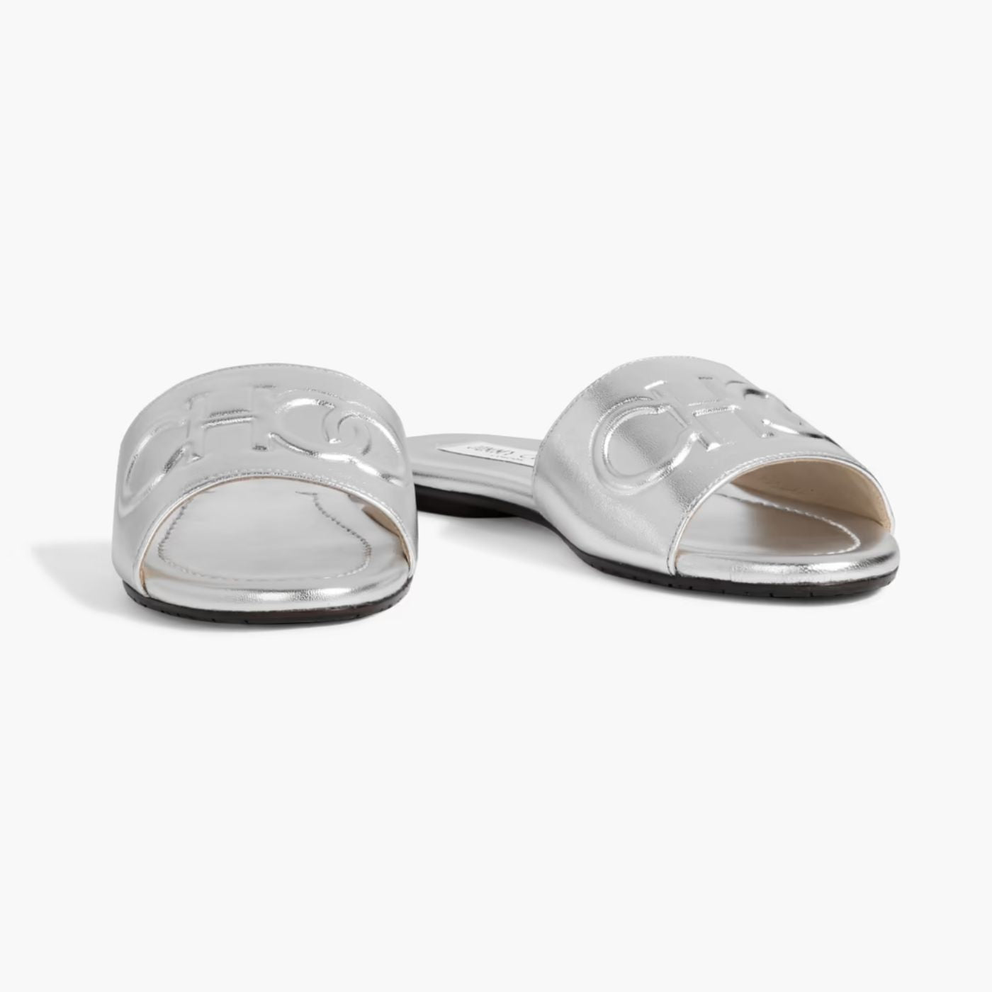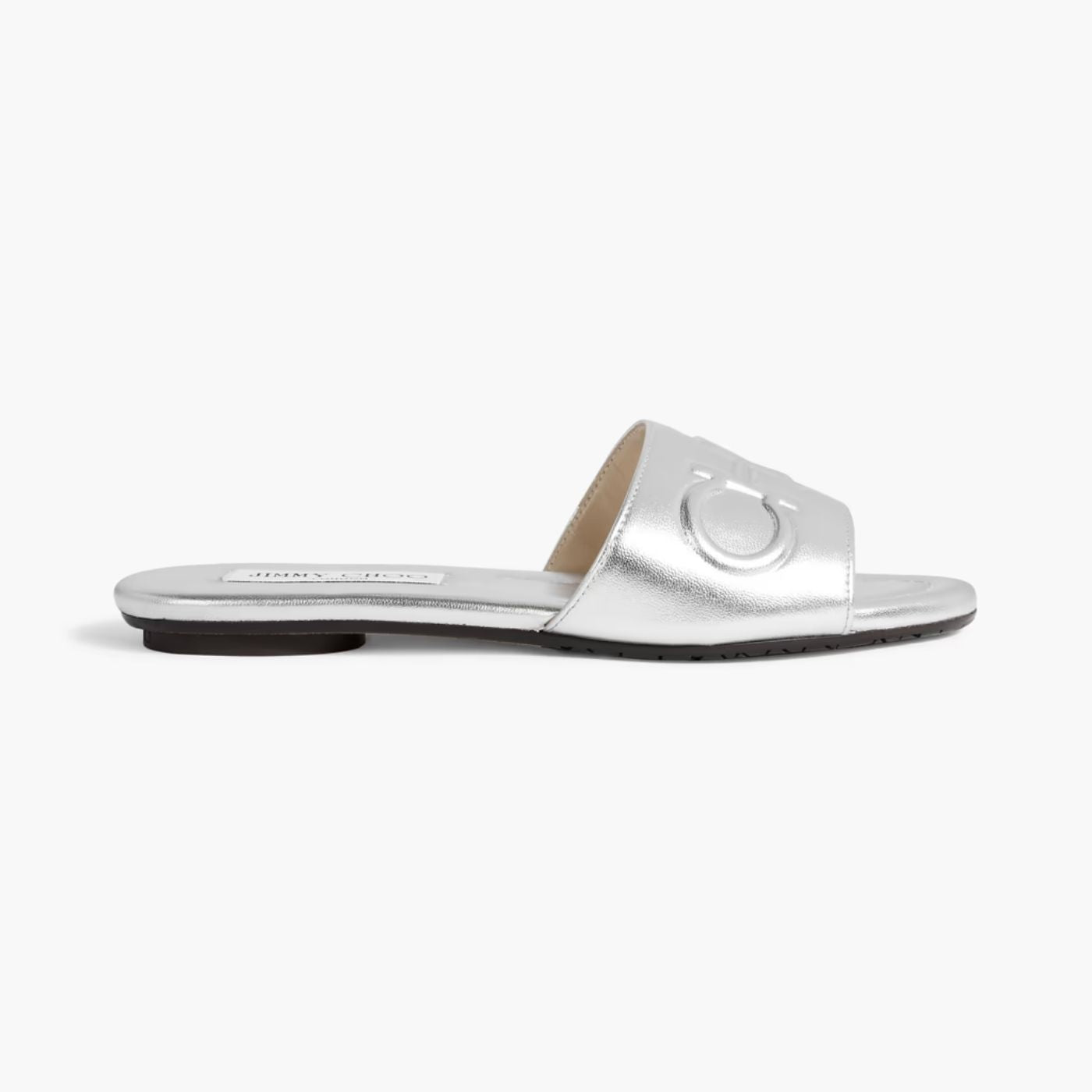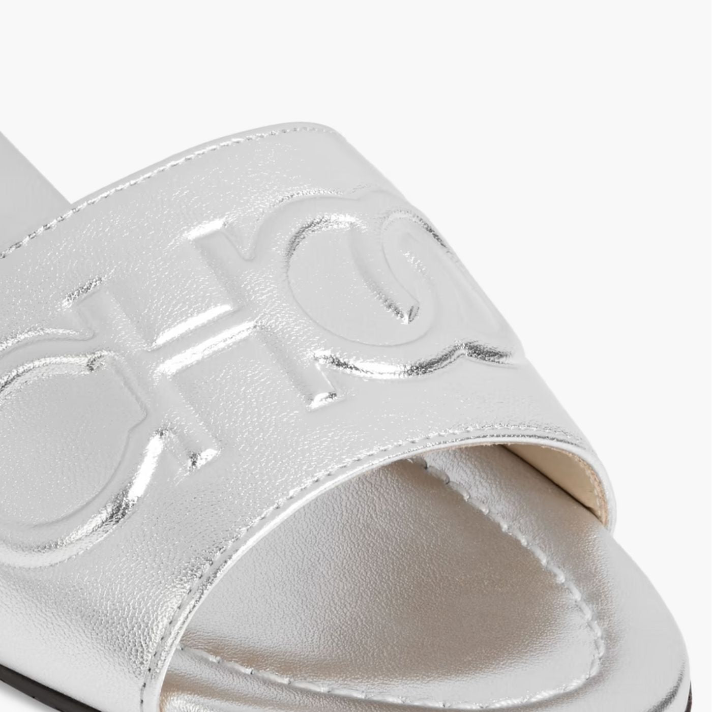 JIMMY CHOO Tiaret embossed metallic leather slides - Silver