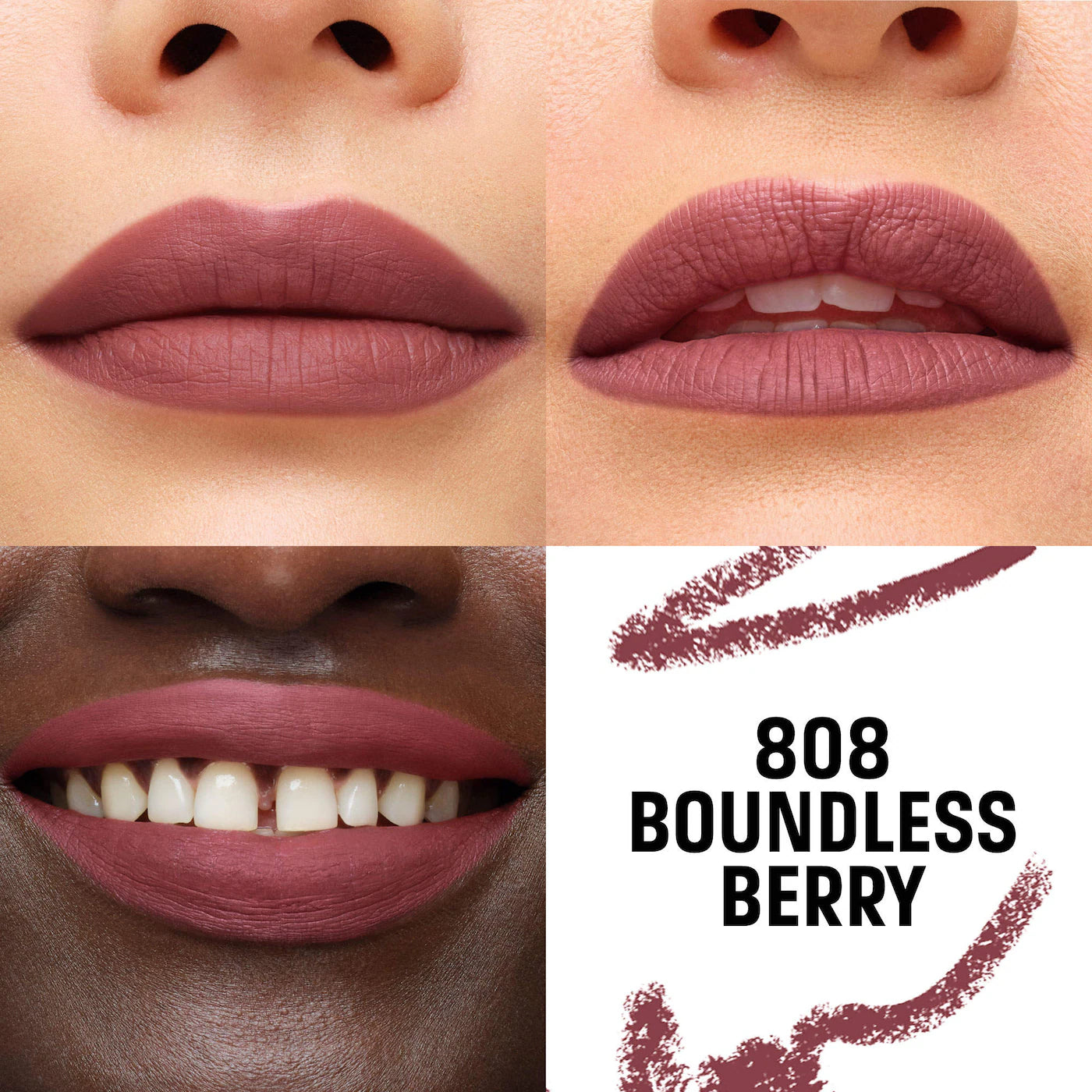 808 Boundless Berry:Mica, Caprylic/Capric Triglyceride, Stearyl Dimethicone, Talc, Cera Microcristallina (Microcrystalline Wax), Hydrogenated Palm Glycerides, Polyglyceryl-3 Methylglucose Distearate, Octadecene, Synthetic Wax, Kaolin, Polyethylene, Tocopherol, Ascorbyl Palmitate, Bht. May Contain (+/-): Ci 15850 (Red 6, Red 7 Lake), Ci 15985 (Yellow 6 Lake), Ci 19140 (Yellow 5 Lake), Ci 45410 (Red 28 Lake), Ci 77007 (Ultramarines), Ci 77491, Ci 77492, Ci 77499 (Iron Oxides), Ci 77510 (Ferric Ammonium Ferrocyanide), Ci 77742 (Manganese Violet), Ci 77891 (Titanium Dioxide).