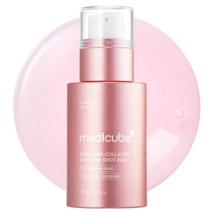 The Medicube - PDRN Pink Collagen Serum Exosome Shot is a tingling, glow-enhancing serum that delivers a powerful boost to your skincare routine using 15 million high-purity exosomes and 99% pure Salmon PDRN, designed to target skin elasticity and radiance with professional-level results.