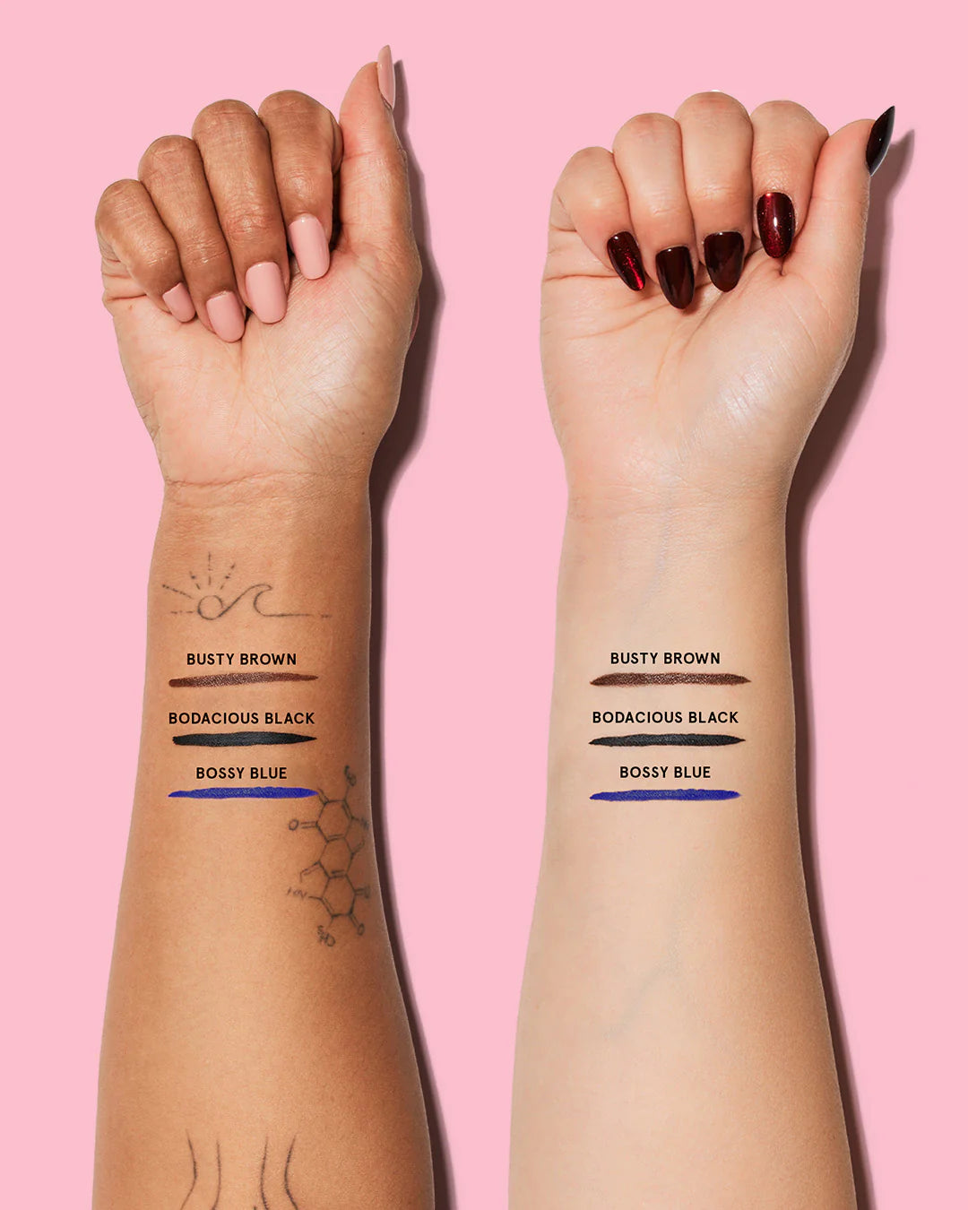 Waterproof, weightless, and eye-shape friendly, this liner layers effortlessly over shadows and blends seamlessly with false lashes.