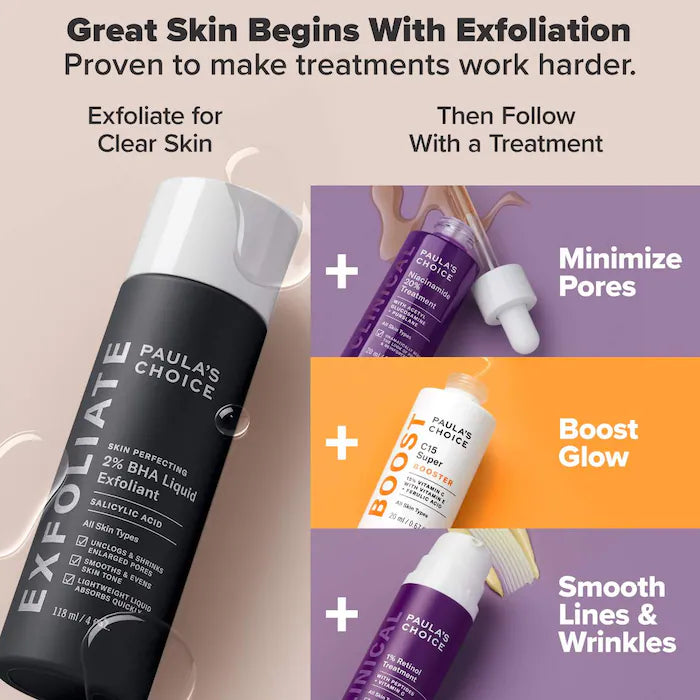 Paula's Choice Skin Perfecting 2% BHA Liquid Exfoliant for Clear Skin is a popular skincare product designed to exfoliate the skin and improve its texture, tone, and overall appearance. Here's a breakdown of what the product offers:
