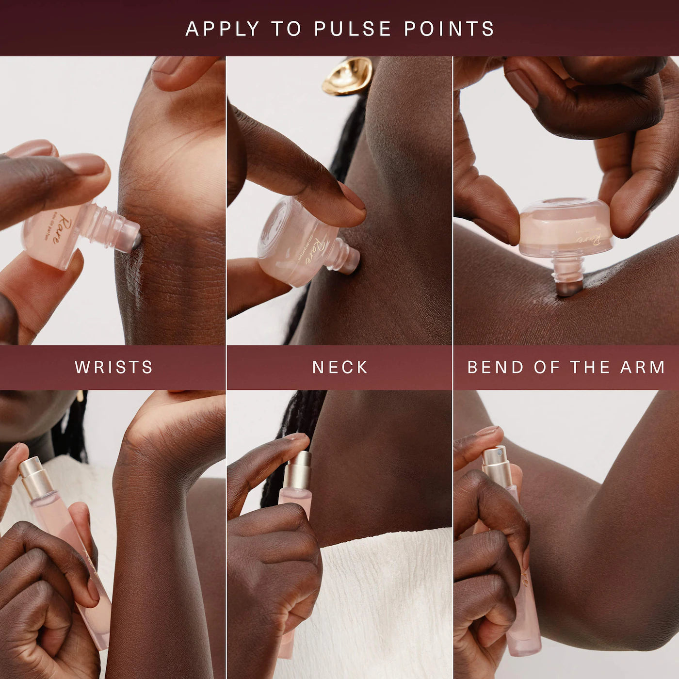 Glide over pulse points: Wrist, neck, chest, and behind the ears. Your body heat will help intensify and diffuse the scent throughout the day. Wear it alone or pair it with other fragrances to customize your scent story.