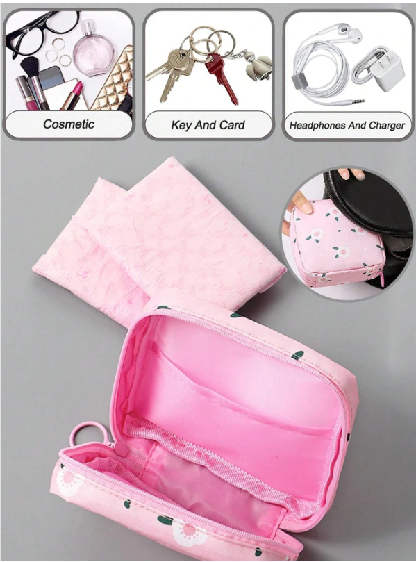 Sanitary Napkins Bag Storage Mini Cosmetic Bag Organizer Waterproof,Girls Cartoon Physiological Period Tampon Organizer Bag - pink