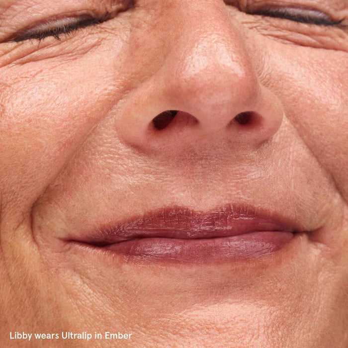 - 3 g/ 0.1 oz Glossier Ultralip High Shine Lipstick with Hyaluronic Acid in Ember, deep mauve (full size)