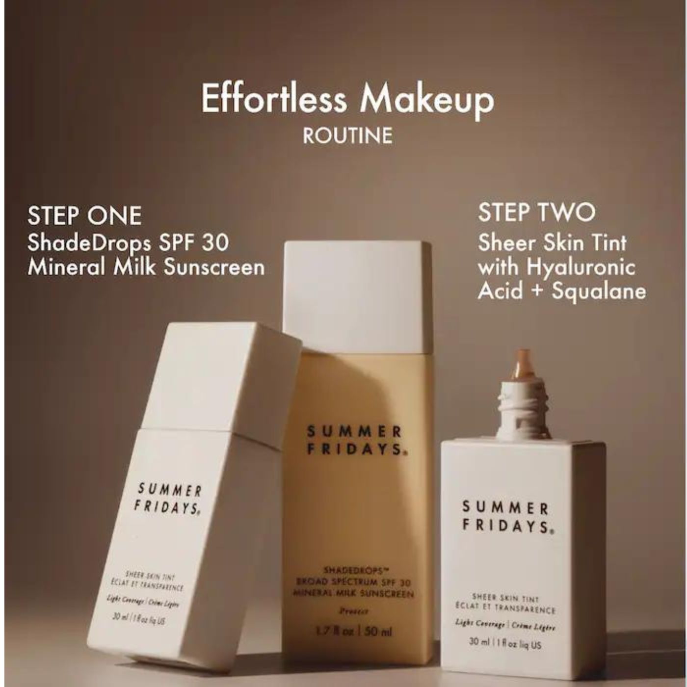 Elevate your sun care routine with Summer Fridays ShadeDrops Mineral Milk Sunscreen SPF 30. Experience the perfect blend of mineral protection, hydration, and radiance, ensuring your skin stays protected, glowing, and beautifully cared for all day long.