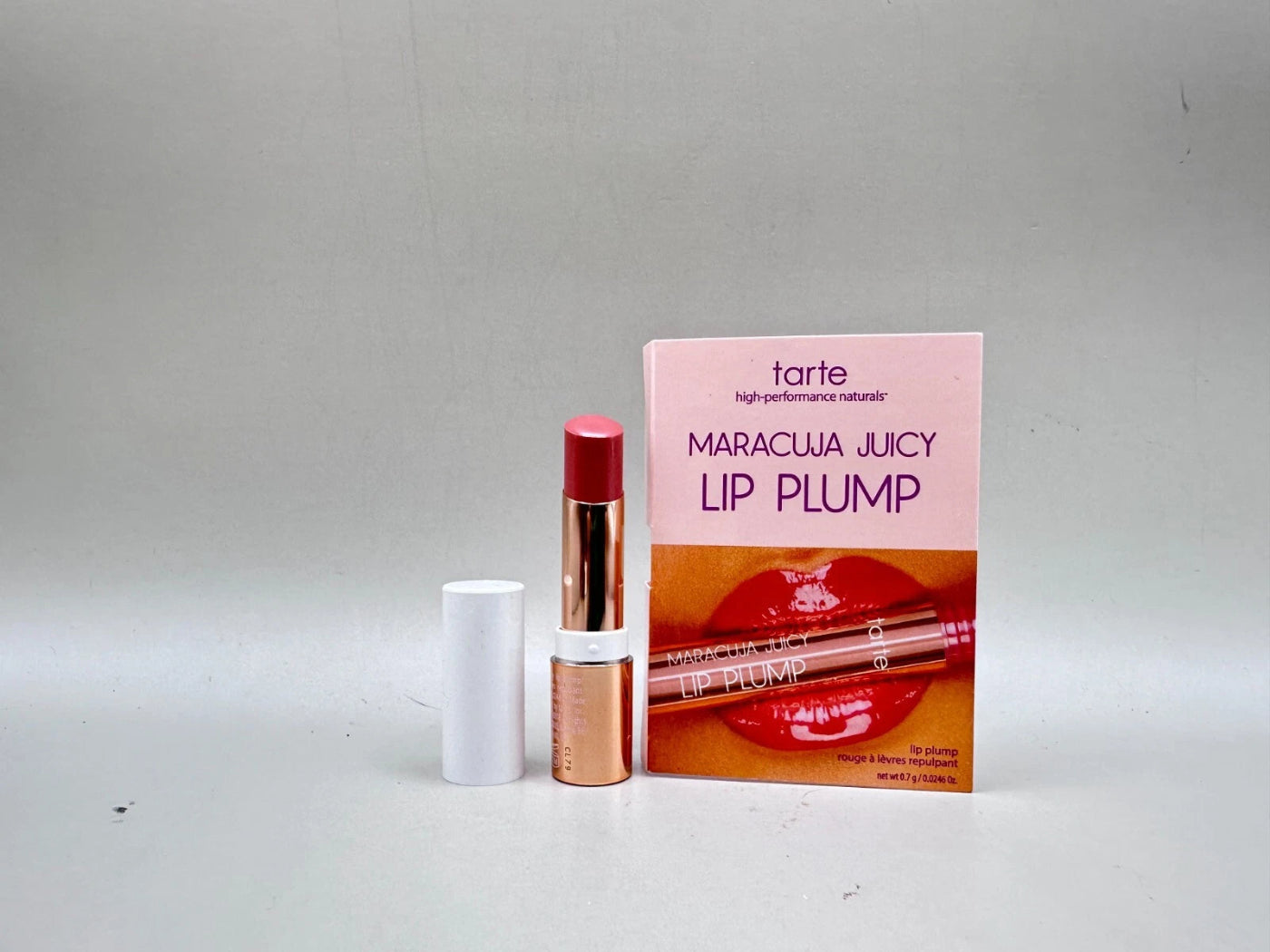 Discover luscious lips wherever you roam with Tarte Maracuja Juicy Lip Plump Balm in travel size. This 0.7g powerhouse packs all the benefits of the full-size formula into a pocket-friendly package perfect for your purse, gym bag, or weekend getaway. Enriched with maracuja passion fruit extract, it plumps and hydrates while delivering a gorgeous juicy shine that enhances your natural beauty. The creamy texture glides effortlessly across lips, providing lasting moisture and a subtle volumizing effect. Don't compromise on lip care while traveling—bring your favorite plumping balm along for consistently gorgeous, hydrated lips on every adventure.